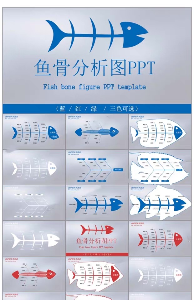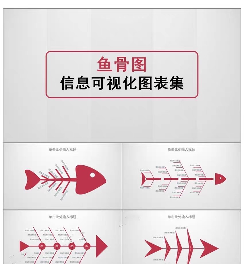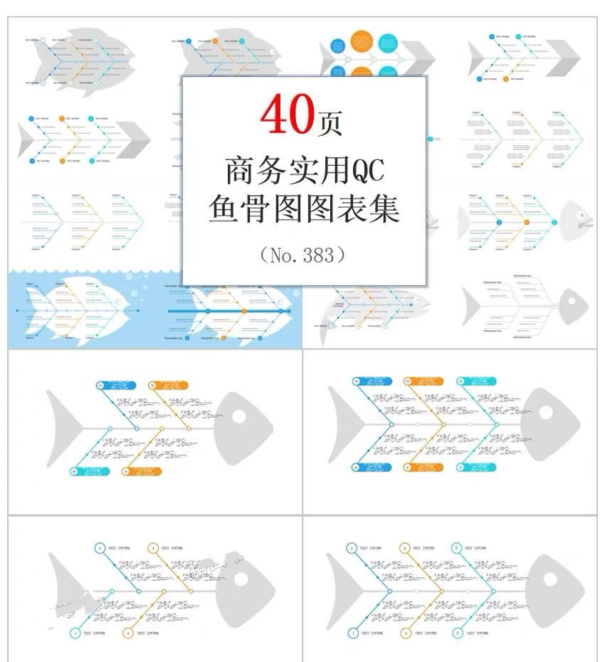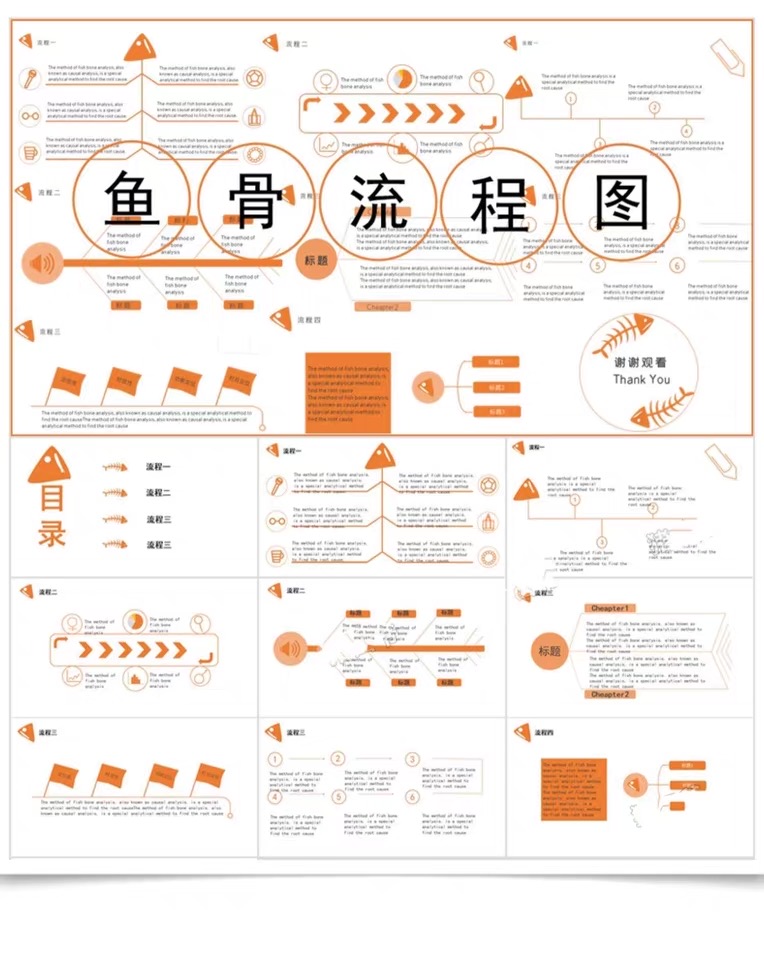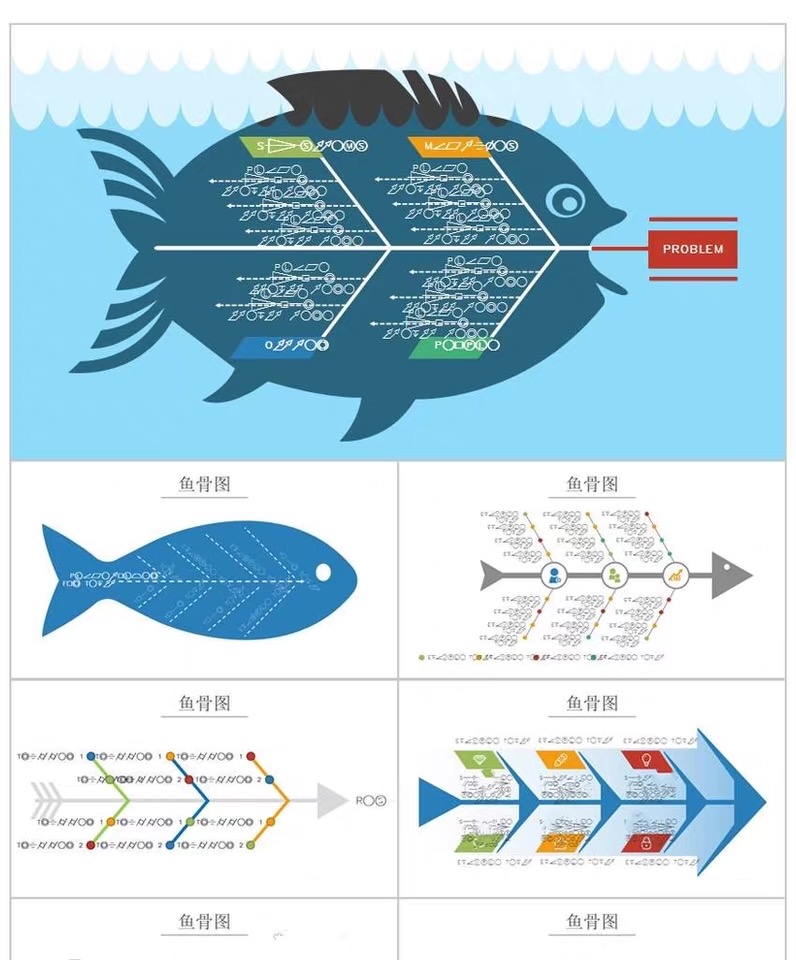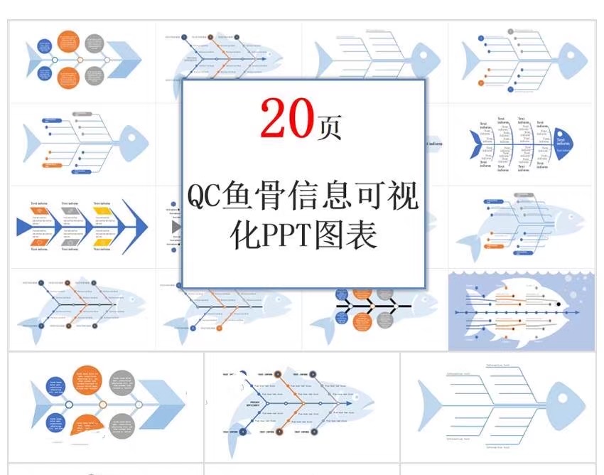 鱼骨图PPT模板qc品管圈医疗院创意扁平化图表分析形信息可视流程